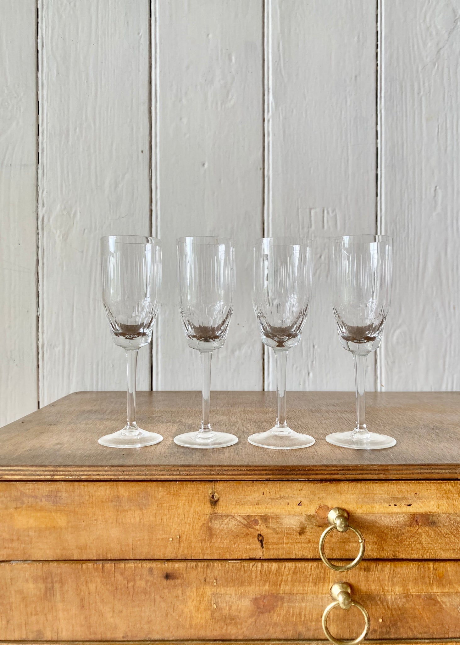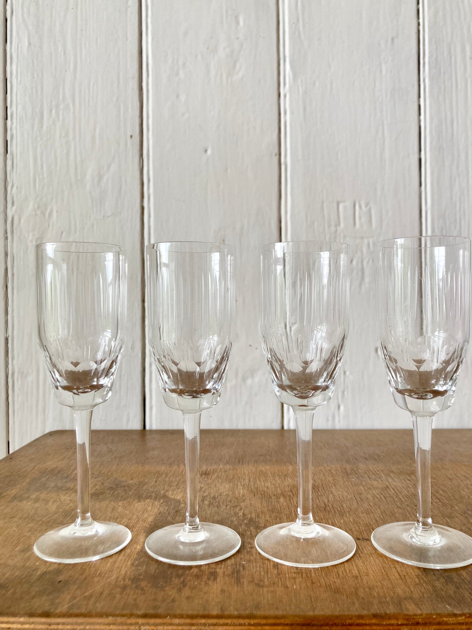 Set of four beautifully cut glass - sherry or pudding wine glasses