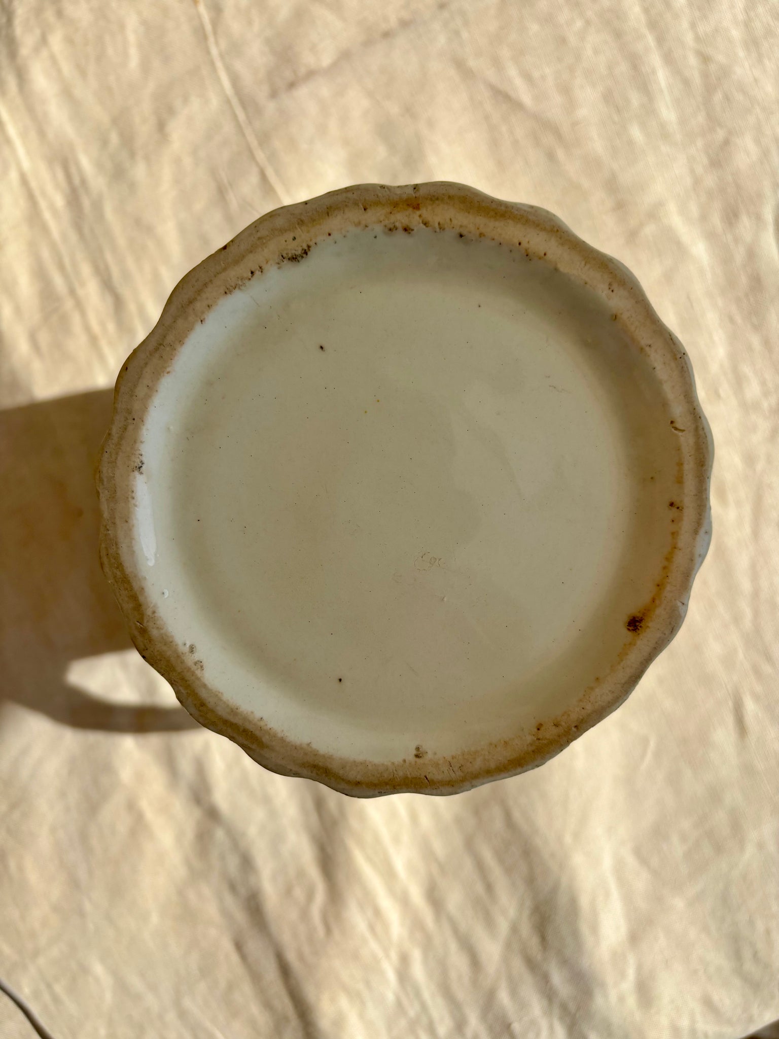 Dimensions: height 19.5cm, diameter at rim 9cm. Glazed throughout and some minor ware in keeping with age.