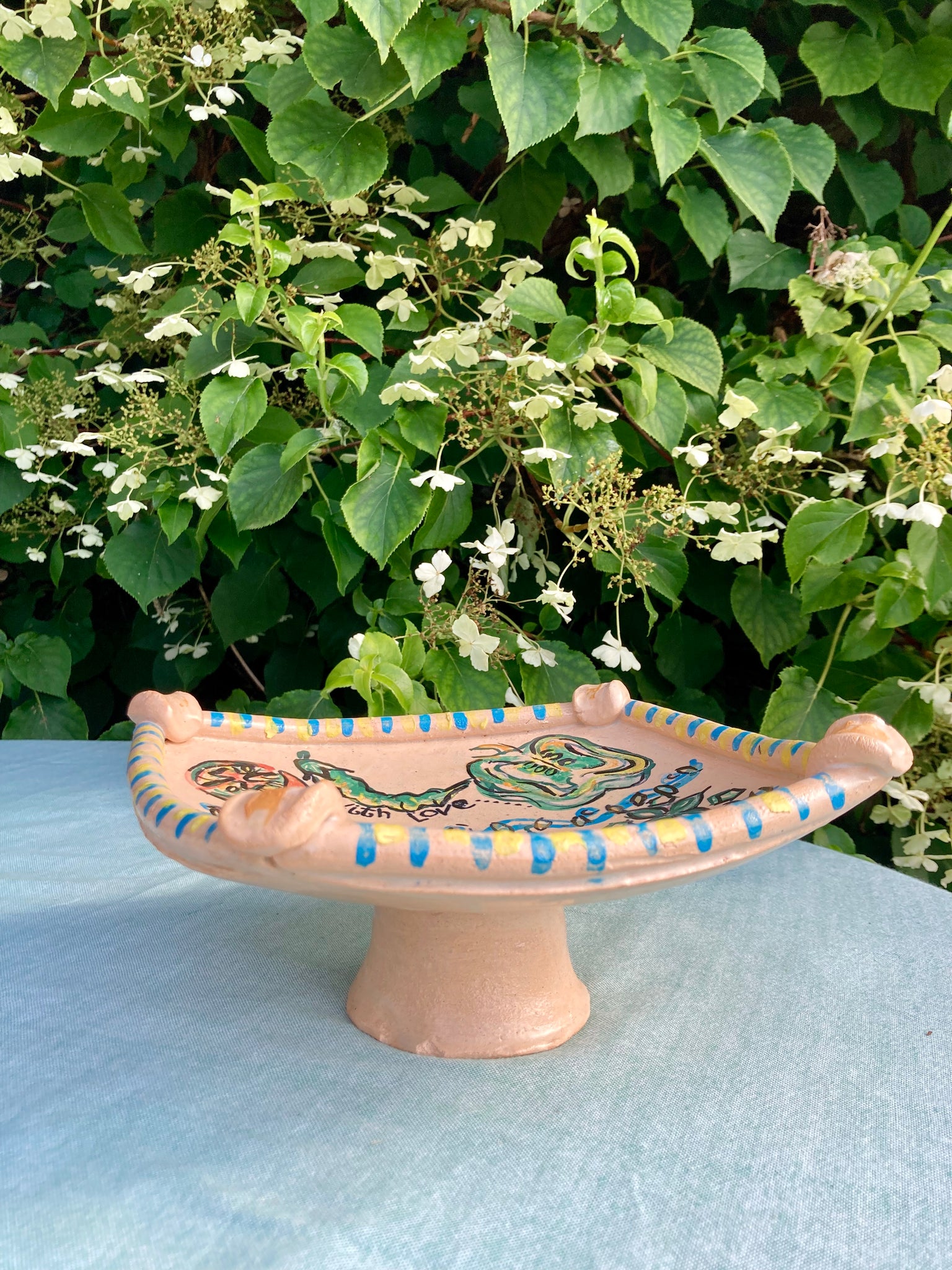 This wonderfully quirky pedestal dish is a studio pottery piece - therefore a one-off and a really rare find!