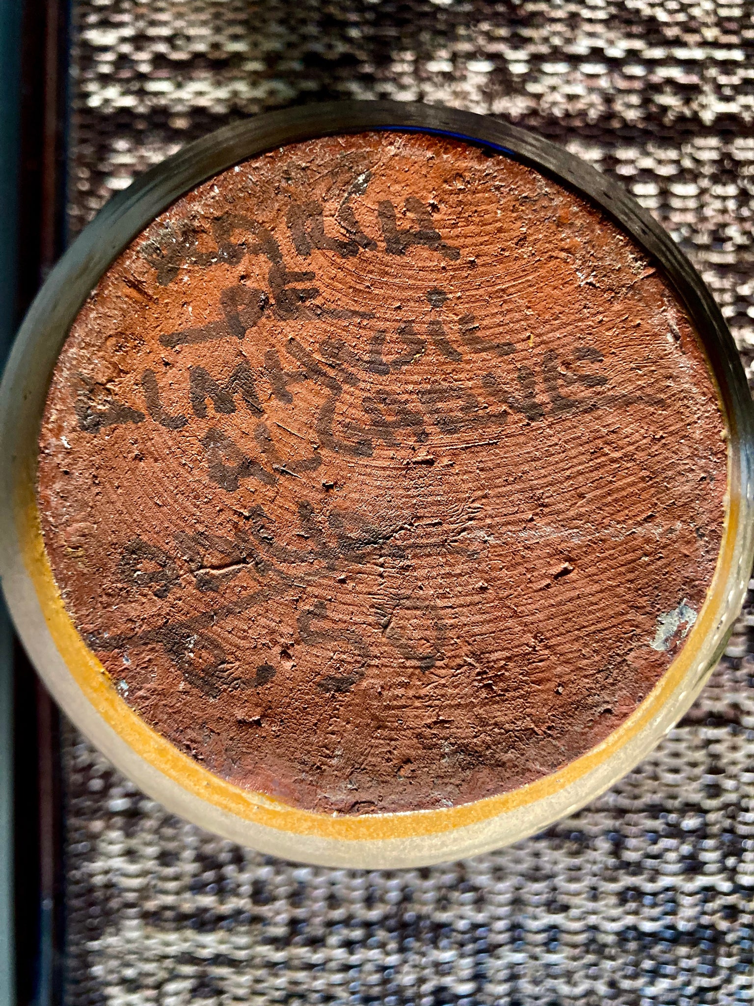 Dimensions: height 25cm, diameter at rim 9cm. Maker's name on base (Algarve region).