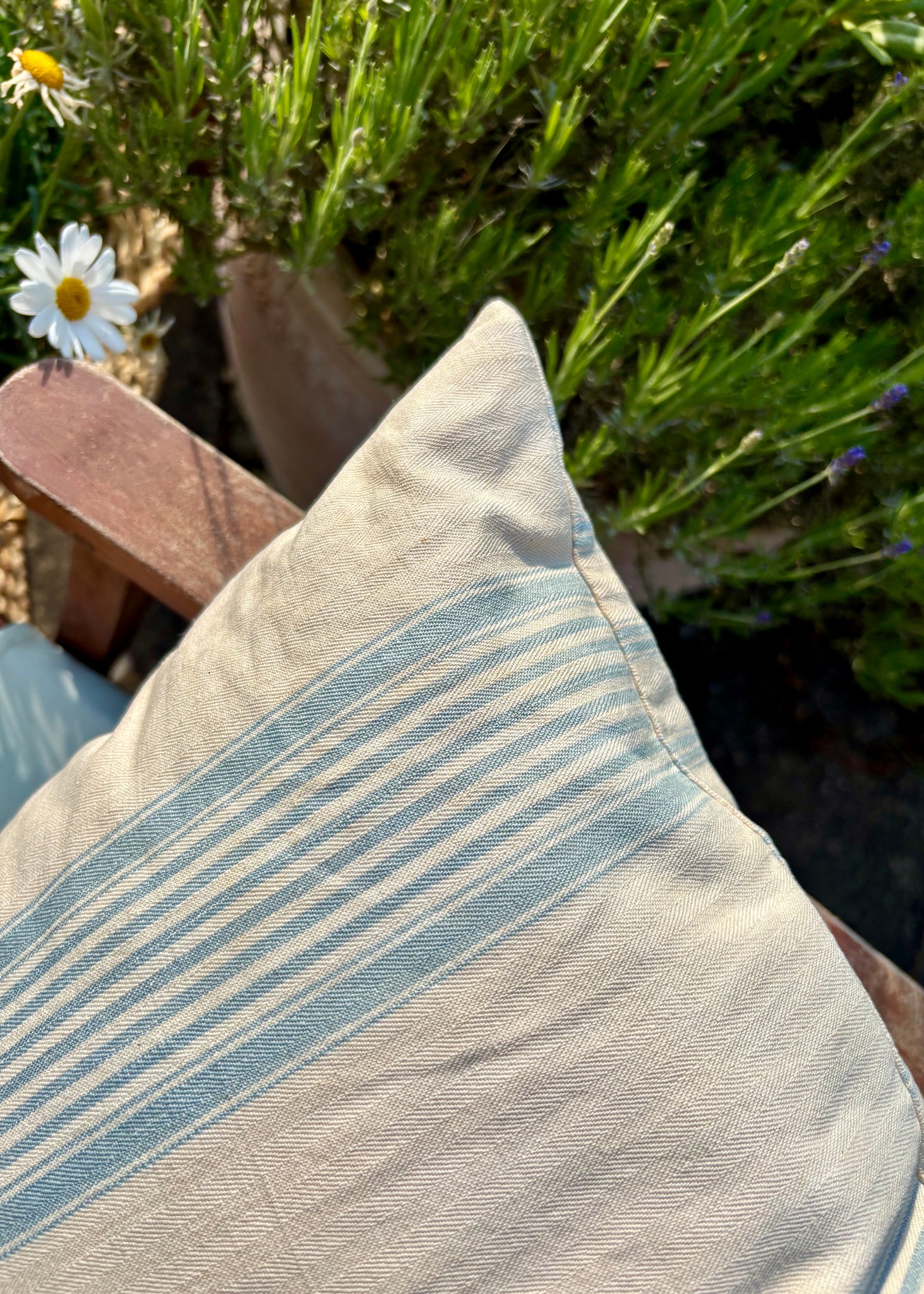 • Load image into Gallery viewer, Blue and white stripe cushion