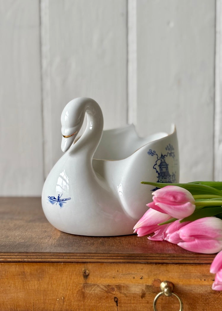 A pretty Royal Winton swan planter with Willow Pattern detailing and gilt rim. An elegant planter or vase for your home.