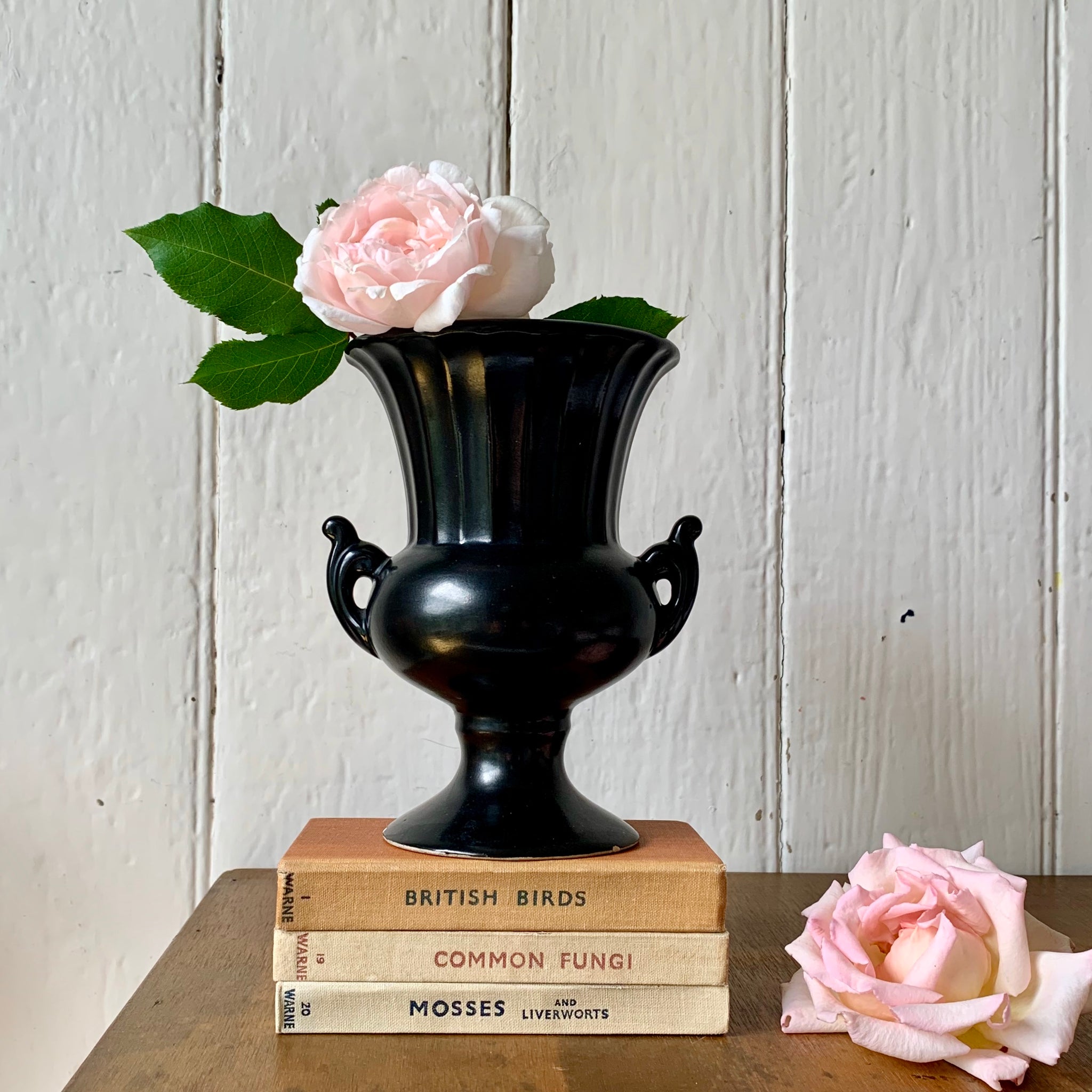 Stylish black urn vase with handles - a super classical style, perfect for all interiors.